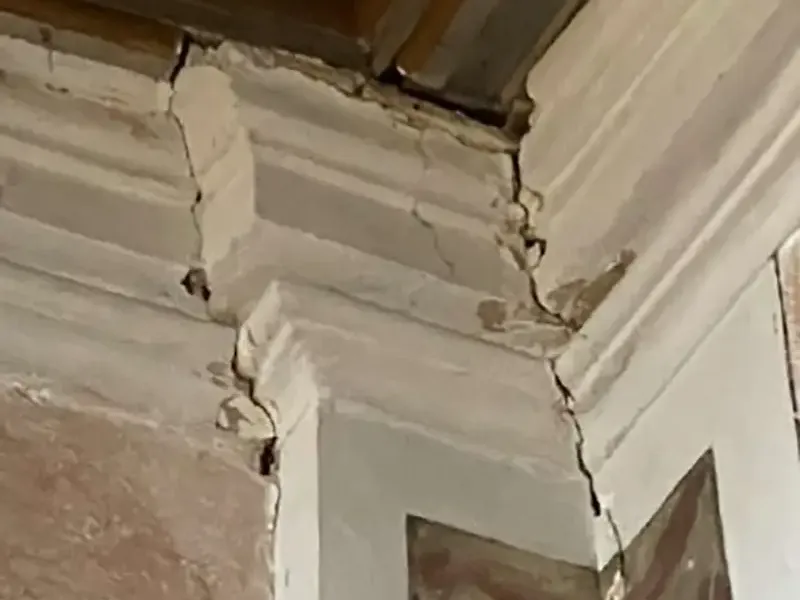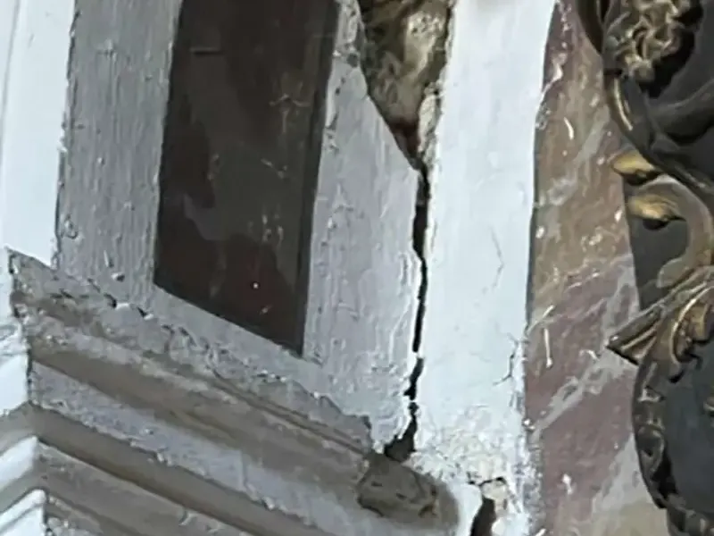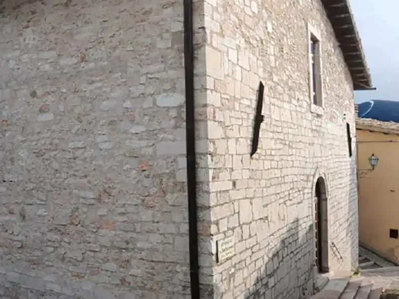 Edificio di culto ubicato in un tessuto edilizio medievale su due livelli: seminterrato adibito a cantine con locali di servizio, e piano terra adibito ad attività di culto. L’intervento consiste nel ripristino della continuità strutturale degli elementi murari con perforazioni armate, ed il rifacimento completo dello sporto di gronda e manto di copertura, sia del campanile che della chiesa, con realizzazione linea vita.